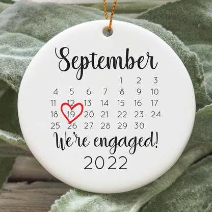 Custom Christmas Ornament. Engaged Christmas Ornament. Engagement Christmas ornament gift. Engaged ornament with calendar. We're engaged ornament.