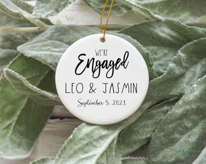 Custom Christmas Ornament. Engaged Christmas Ornament. Engagement Christmas ornament gift. Dunn inspired design. We're engaged ornament.