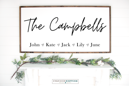 Personalize a beautiful farmhouse style framed name sign for your family OR gift this to a family to show them love. It is such a beautiful centerpiece for a living room or entryway. You can truly make this your own with all of our UV print color options, font selections, and frame stain colors. Simply specify what you would like in the personalization box, and we will create your custom name sign.