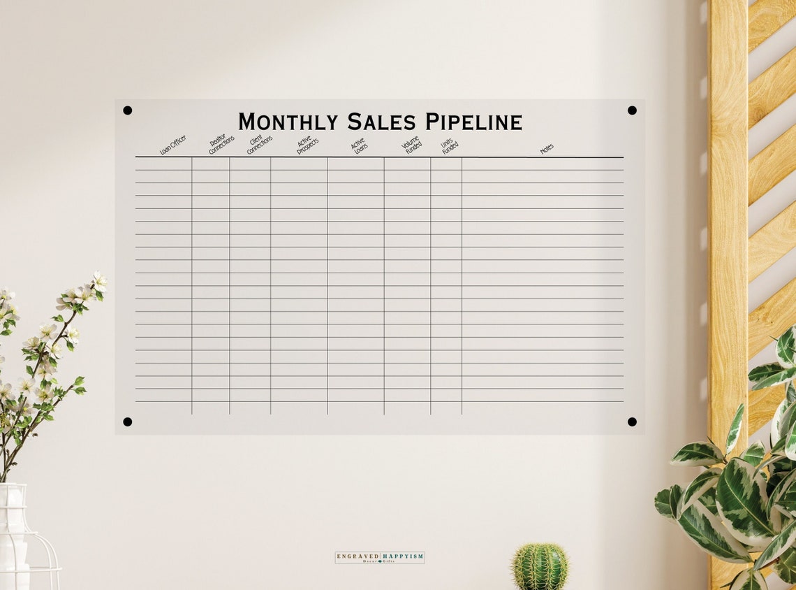 Loan officer pipeline wet/dry erase board, custom acrylic board for wall