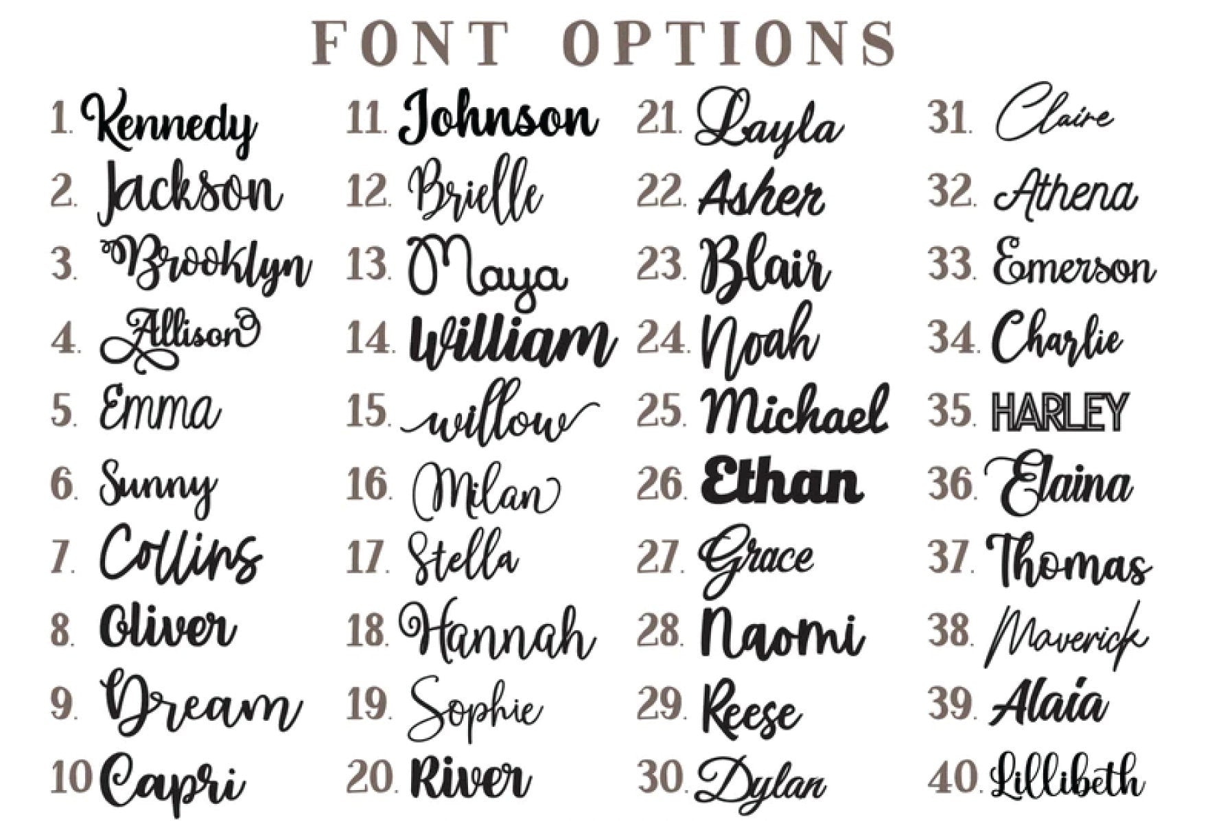 - Name can be done in any color acrylic shown in our additional photos