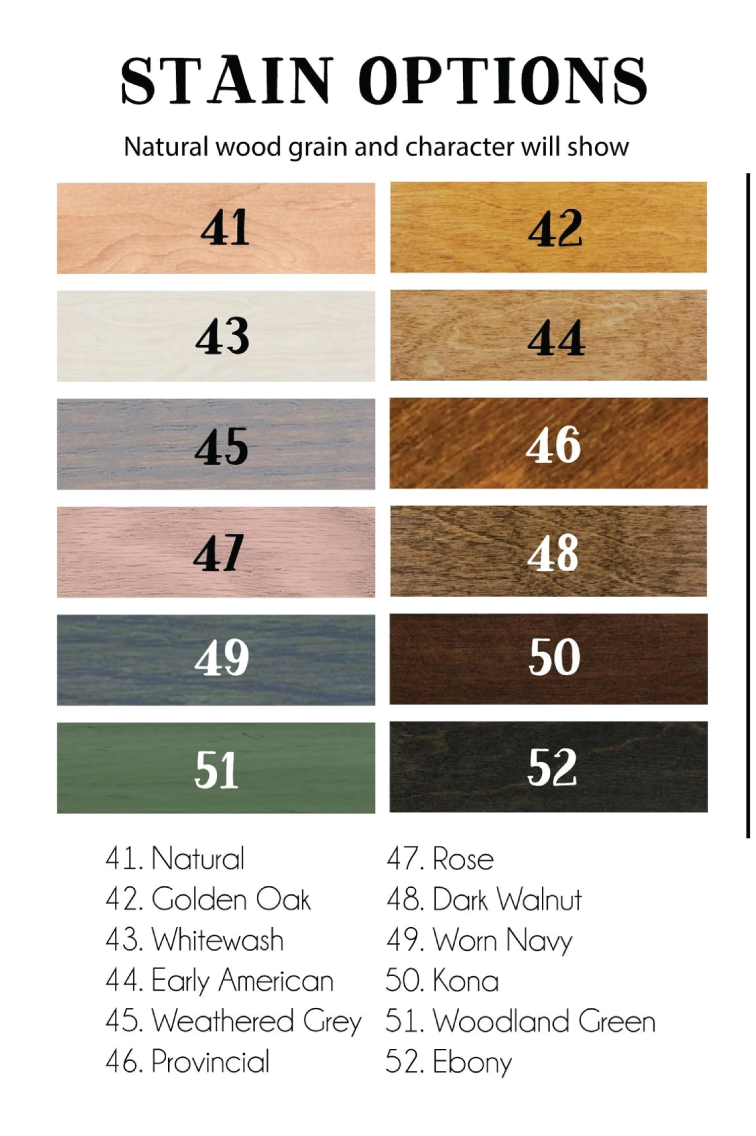 - Comes as unfinished unless an add on paint or stain is purchased.