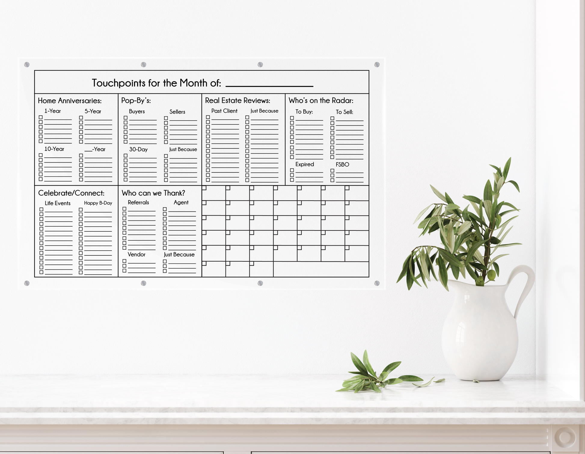 Real estate pipeline dry/wet erase acrylic sign, Realtor dry erase board, Touchpoints board